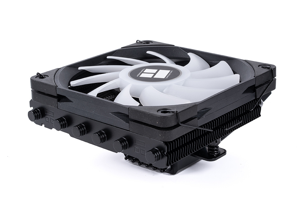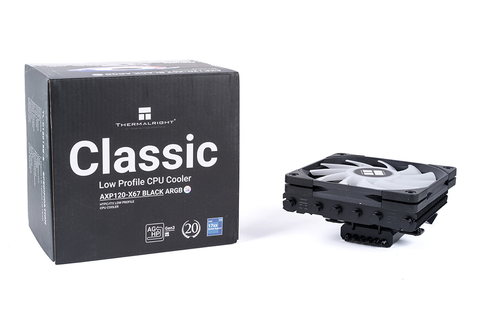 由於Terra對風冷的散熱器的支持上有一定的高度限制,和大多數A4架構的ITX機箱一樣基本上只能選用下壓式的風冷散熱器,這次選用的是利民的AXP120-X67 BLACK ARGB,相對90系列,120mm的風扇可以帶來更好的散熱表現,支持INTEL和AMD全平臺,並附贈了TF7導熱硅脂。