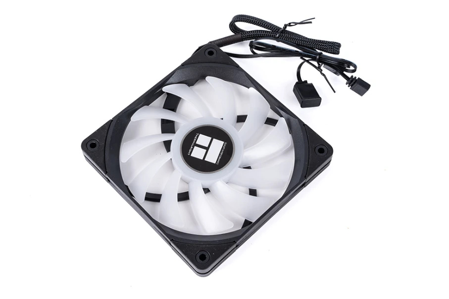 AXP120-X67 BLACK ARGB 自帶的風扇型號爲TL-C12015B-S 12CM,採用S-FDB軸承,扇葉採用均勻發光材料,支持PWM 4PIN溫控,最大轉速爲1800RPM,支持ARGB同步燈效。