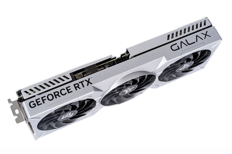 影馳RTX 4070金屬大師長寬高尺寸爲328*139*48mm,雙槽厚度對於小機箱非常友好,可謂是ITX新的春。顯卡頂部也帶有斜紋散熱開孔設計,並予以GEFORCE RTX logo和GALAX的LOGO字符裝飾。