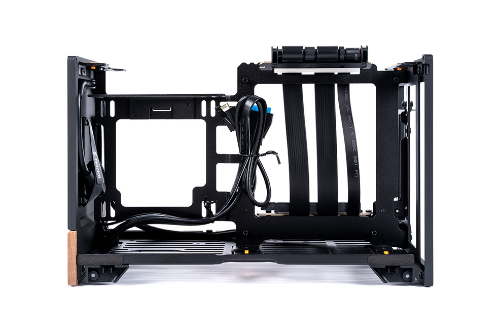 Terra內框架爲傳統的A4架構,左側爲顯卡安裝位,最大322mm的顯卡,右側爲電源和主板安裝位,支持標準ITX主板和SFX電源。主板採用倒置安裝模式,由一條PCI-E延長線與顯卡連接。