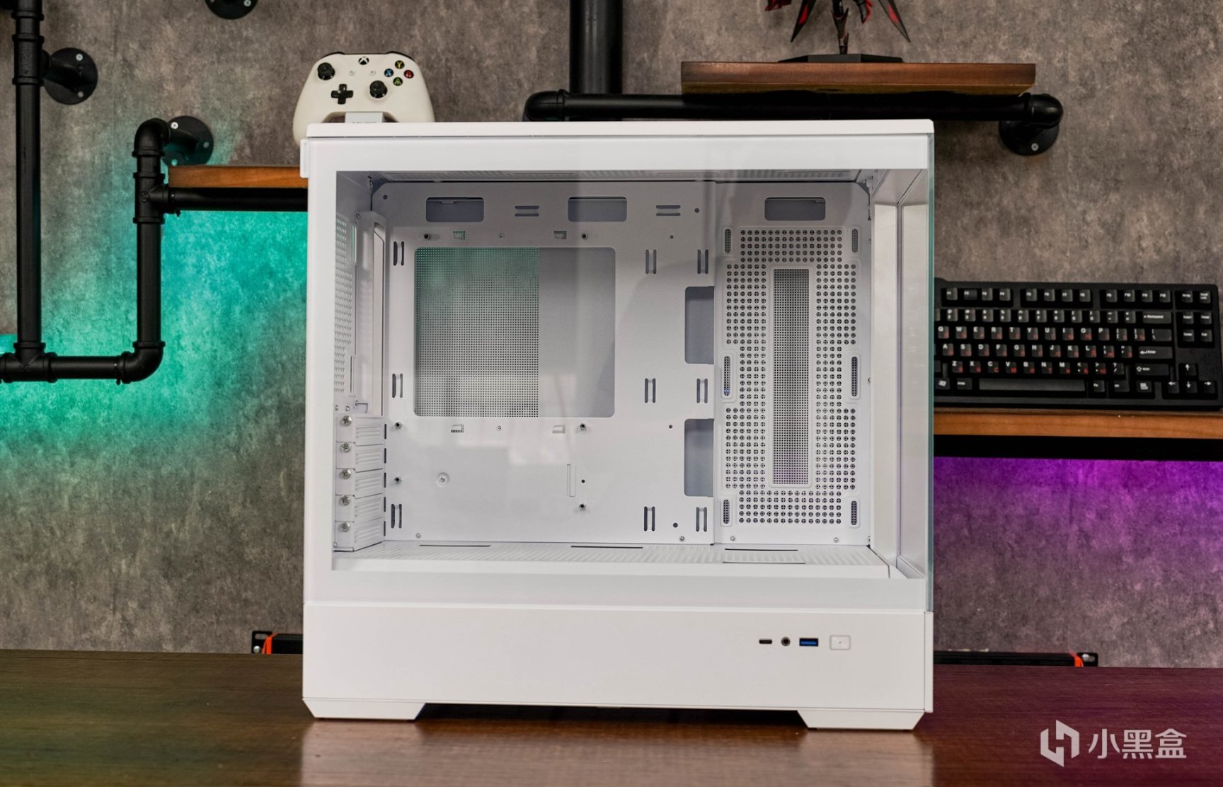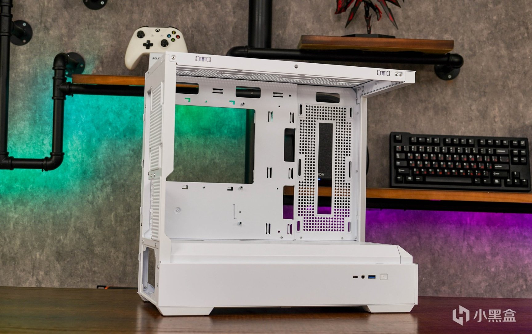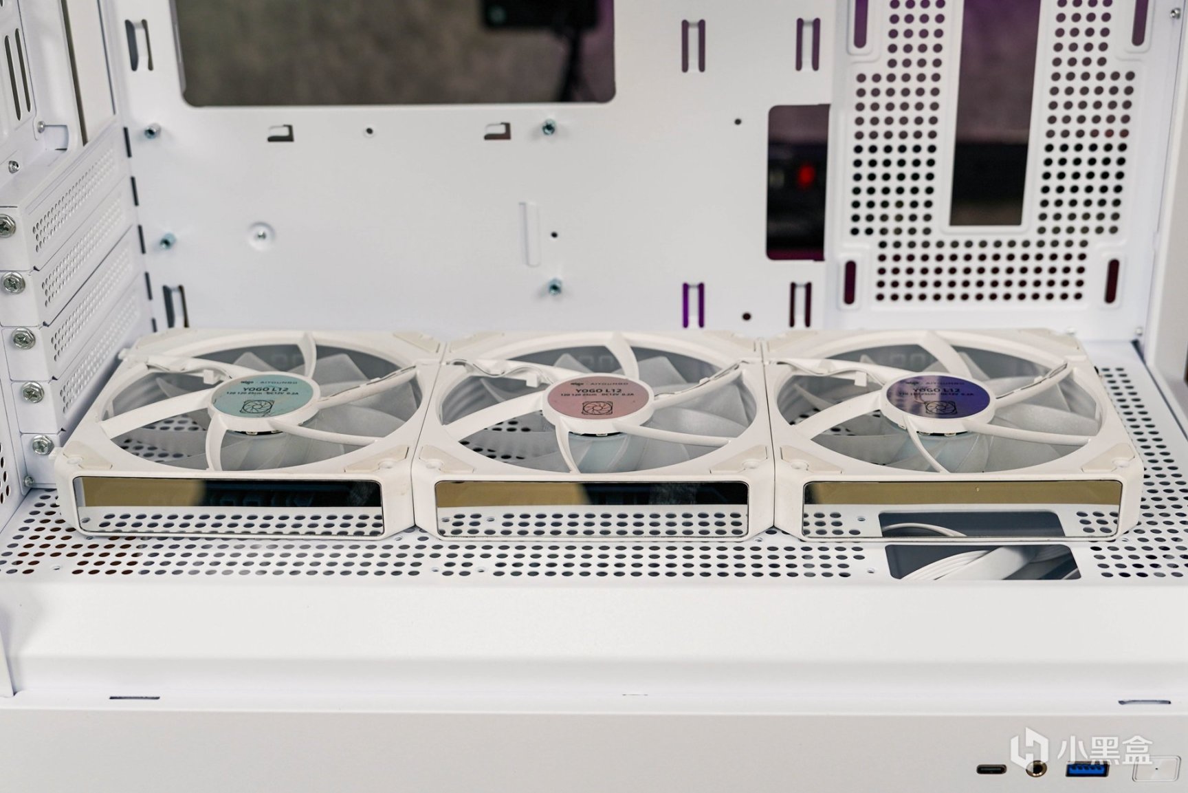 海景房機箱最大的優勢就是其便捷的安裝體驗,機箱內部的兼容上置可以兼容360MM水冷,側面和下置還有後置都是可以安裝散熱風扇的,但是由於下置電源倉的高度下置安裝風扇作用不算很大,充其量算是個裝飾效果而已。