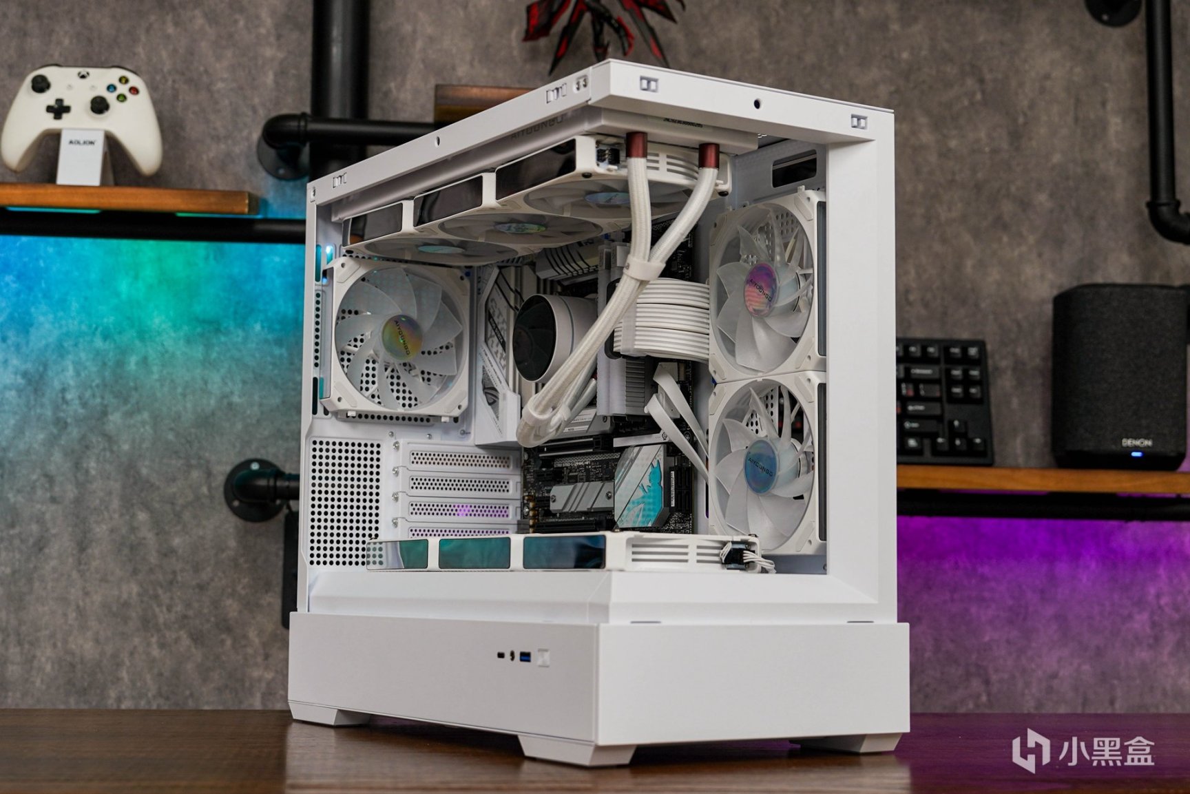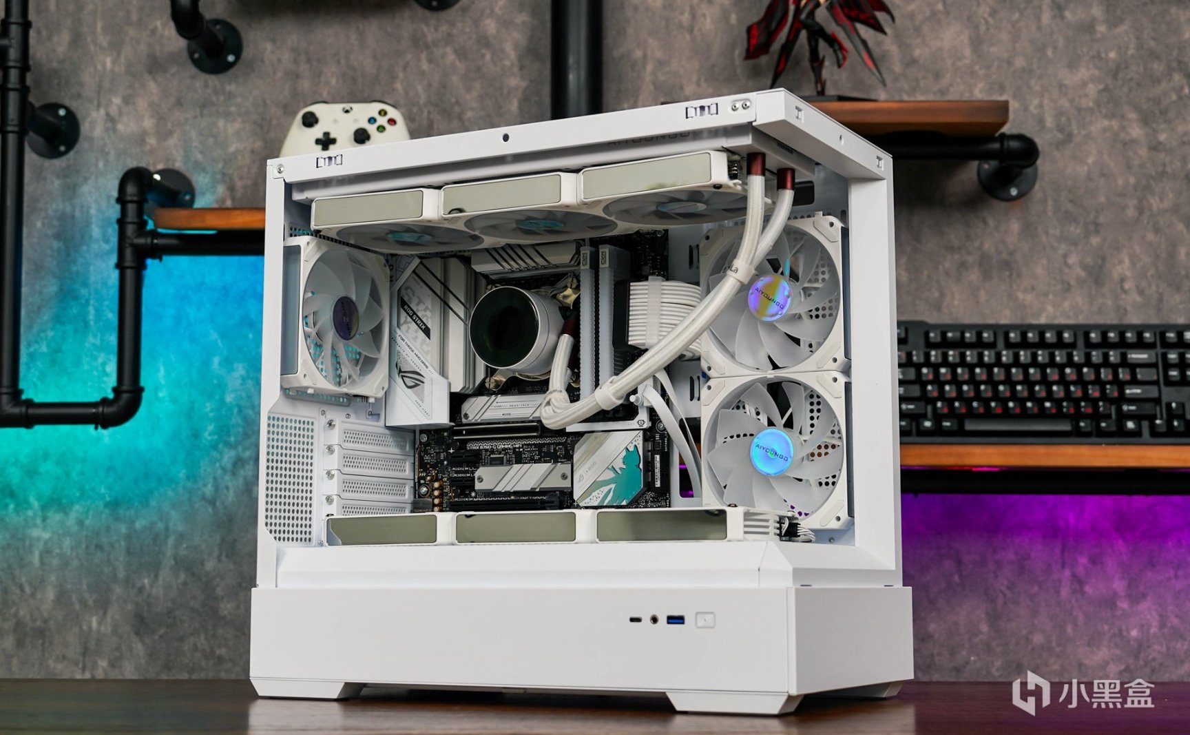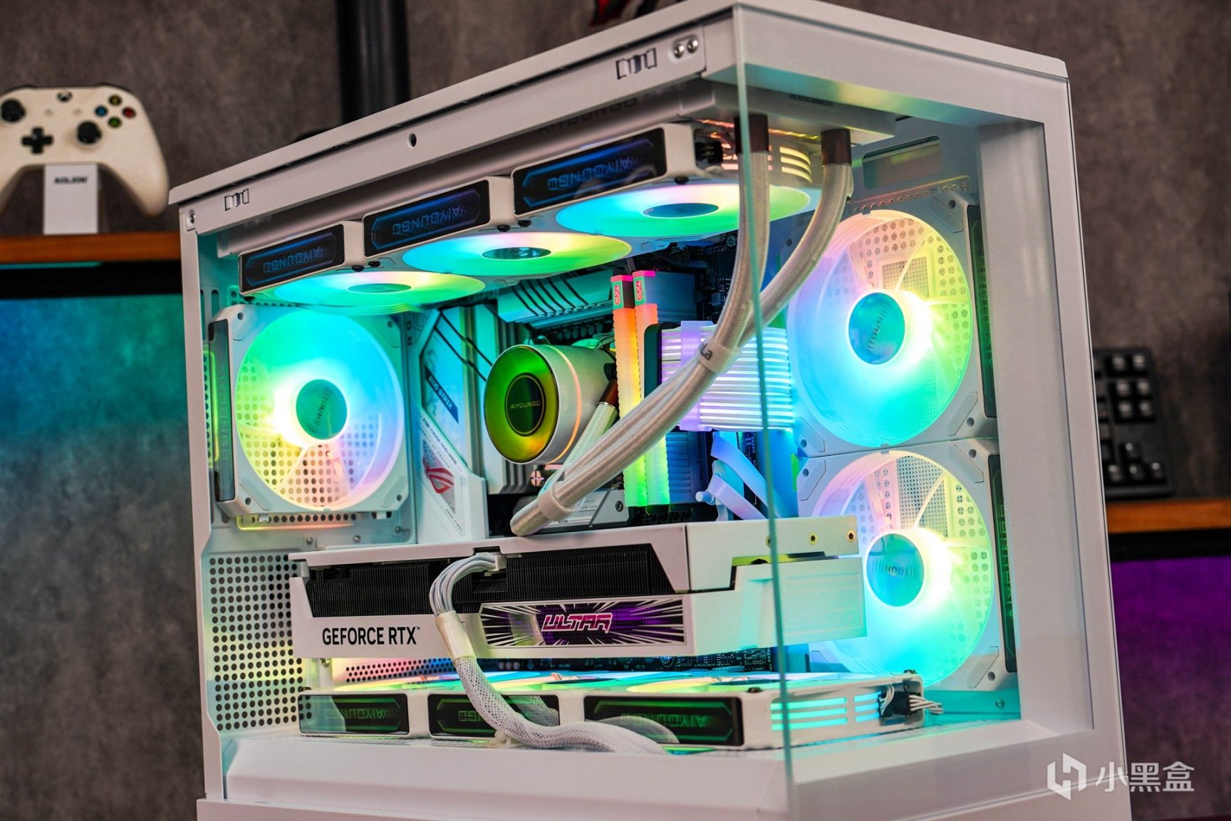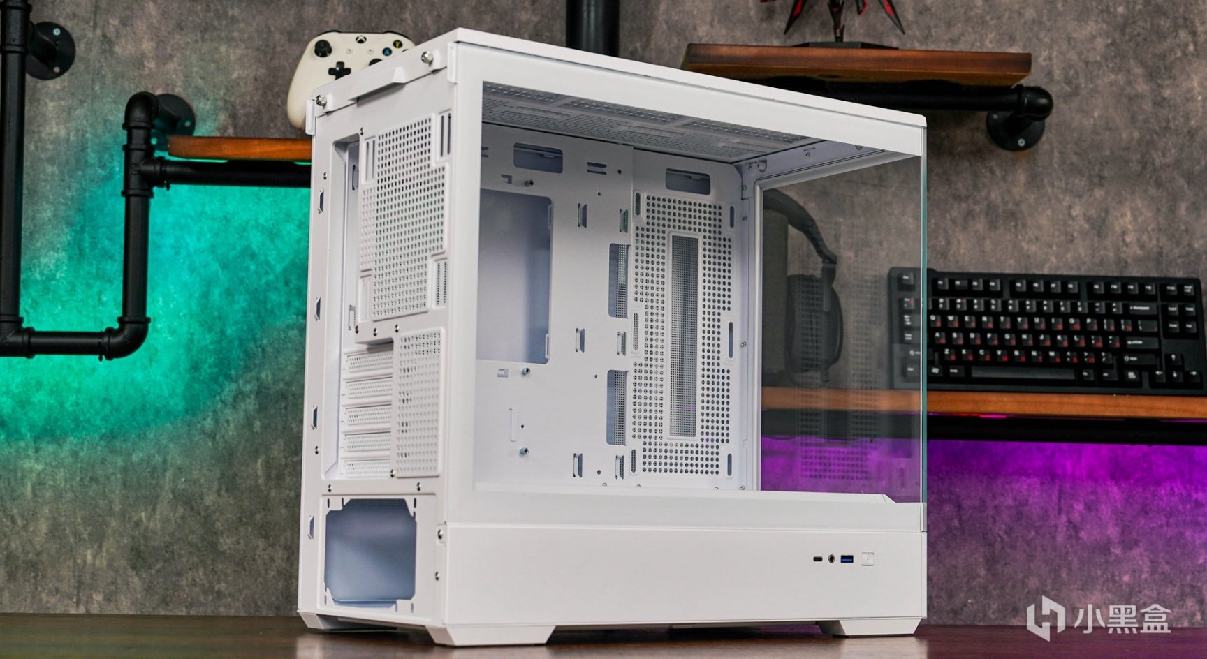 海景房機箱最大的優勢就是其便捷的安裝體驗,機箱內部的兼容上置可以兼容360MM水冷,側面和下置還有後置都是可以安裝散熱風扇的,但是由於下置電源倉的高度下置安裝風扇作用不算很大,充其量算是個裝飾效果而已。