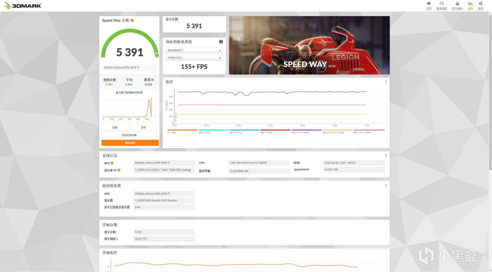 3D MARK兩項基礎的基準測試項:speed way 和 Prot Royal 的平均幀數均達到155FPS。綜合得分也非常強悍的。