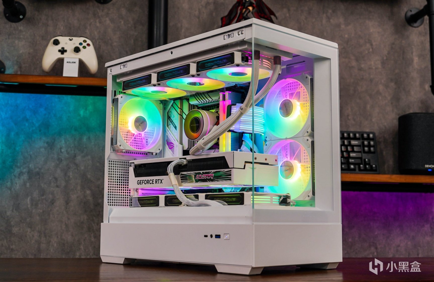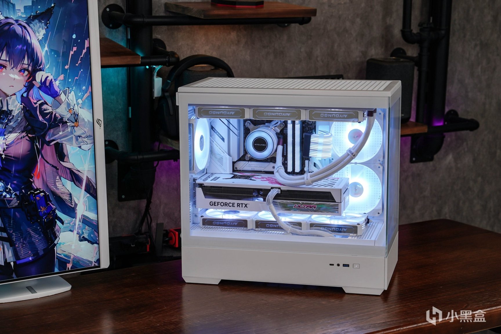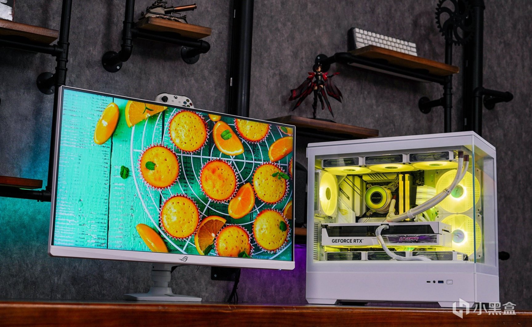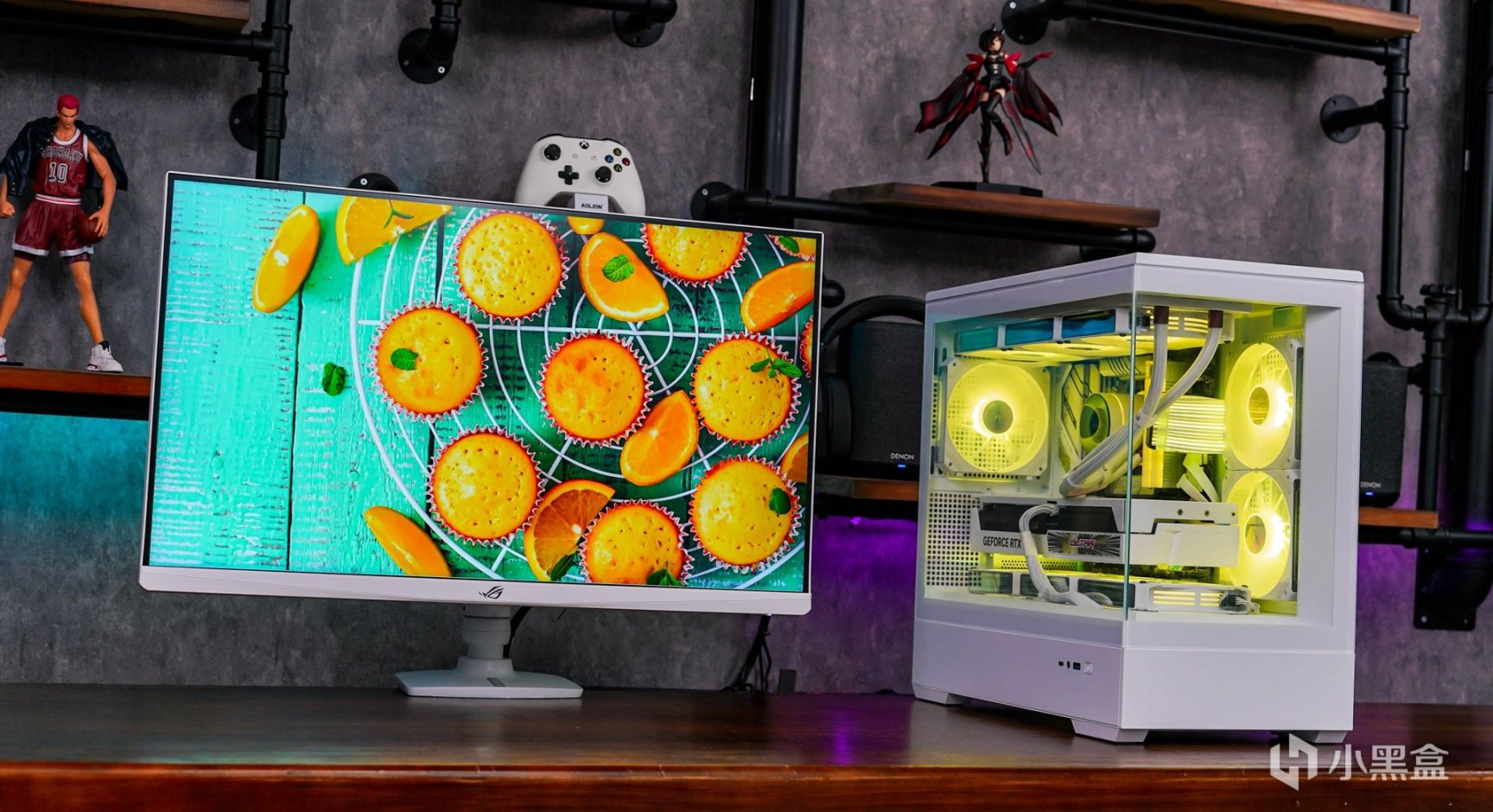 裝機展示分爲二個部分,一是搭配現實器的展示,二是主機整機以及內部硬件展示。首先是搭配顯示器部分,因爲整機是可以通過主板燈效同步串聯來協調整個主機的燈效氛圍,搭配上適配的桌面壁紙是否觀感會更好?