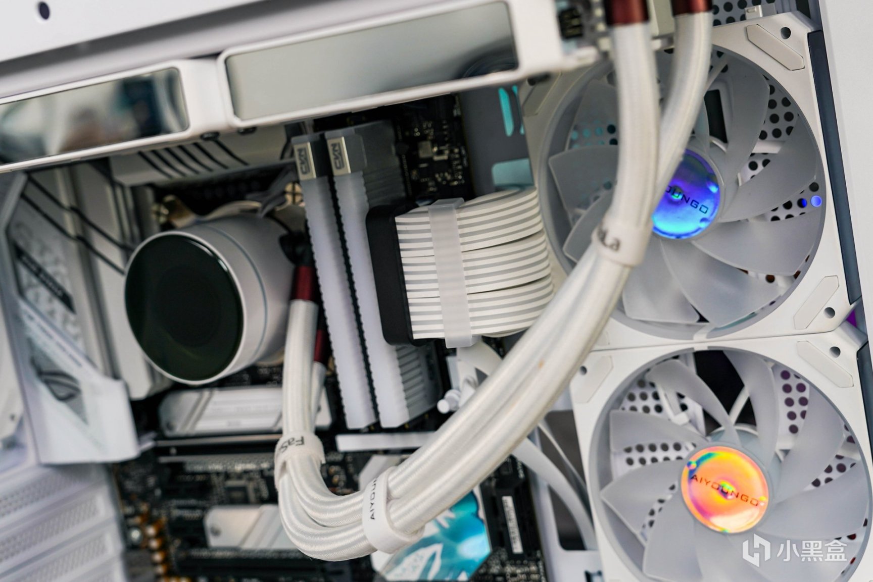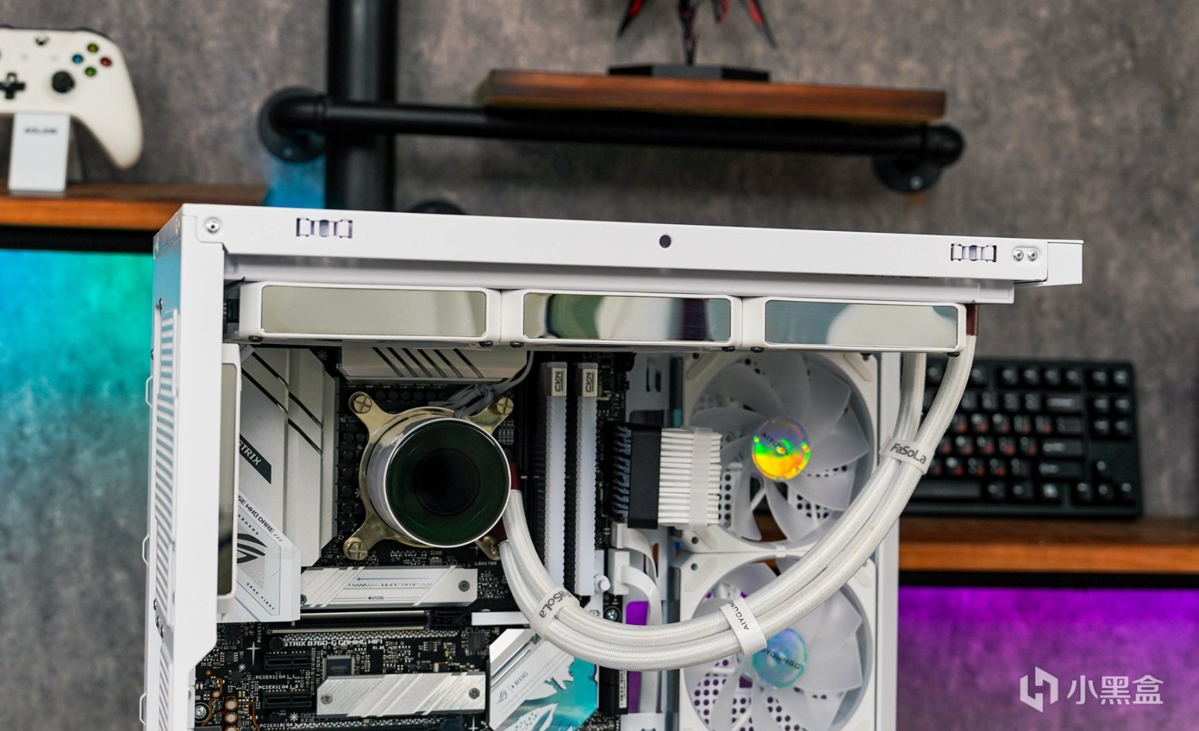 上置冷排位是經過前移處理,所以並不會擋住CPU供電的安裝,冷排裏面的縱深位置是充足的,就算是一些較粗的定製線都是可以輕鬆安裝的。