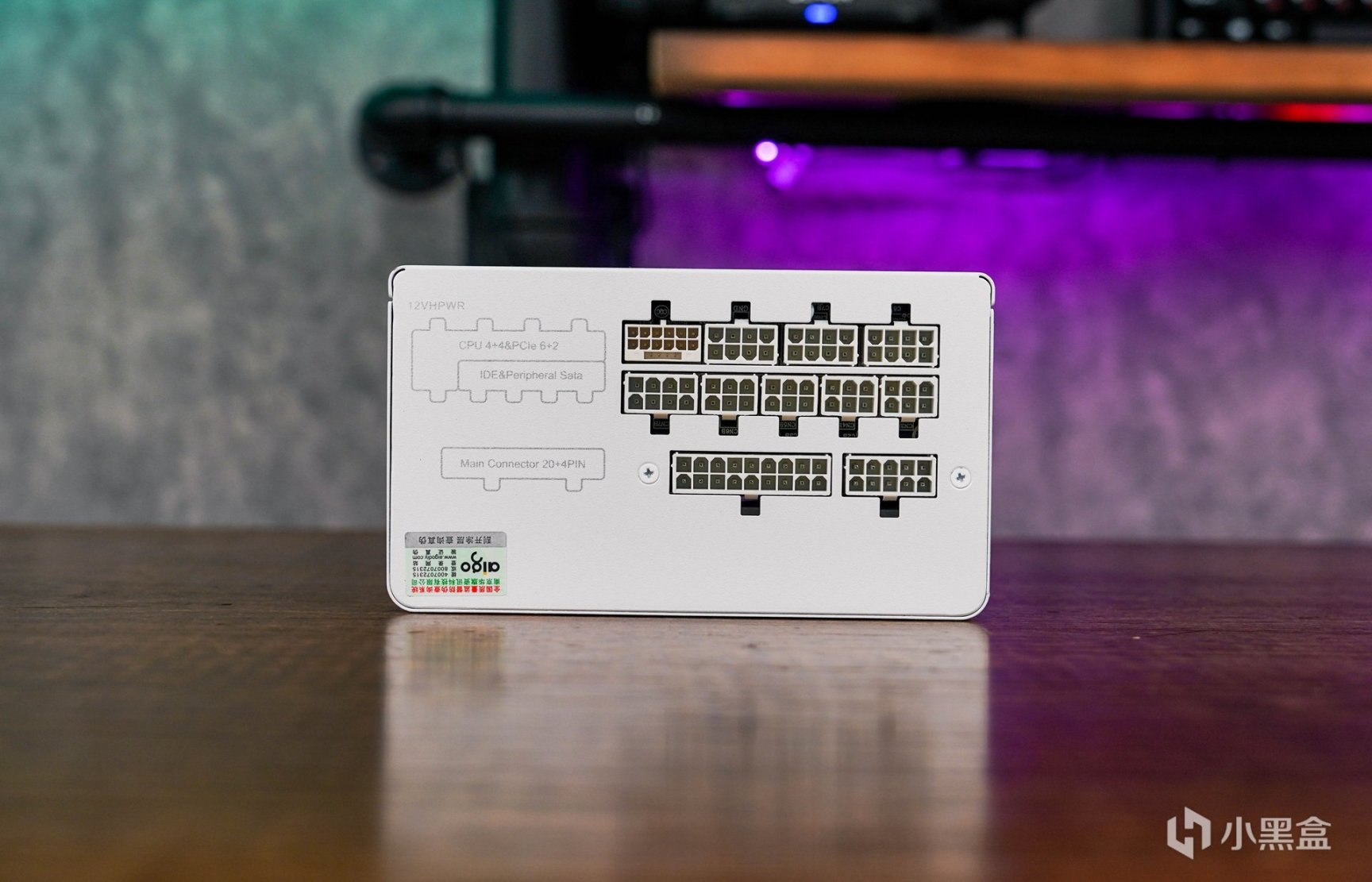電源提供了原生的PCI5.0標準的12+4 16 PIN 原生供電接口,搭配附帶的12VHPWR 16 Pin模組線,可以直接爲 PCIe 5.0 系顯卡供電,850W電源最高可以提供 450W 的供電能力。