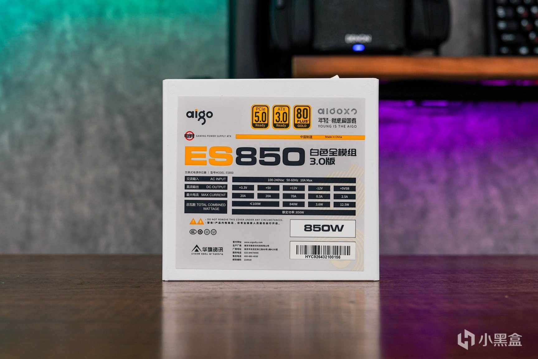 這次主體是白色機箱,那麼在電源配色也折騰一款和機箱同色調的電源--ATX3.0規格的金牌電源。作爲今年主推的電源產品白色的金牌電源也是有不同的選擇的,而這次使用的是AIGO ES850 ATX3.0款的金牌全模組電源,外觀上白色電源的顏值還是很能打的,相對於顏值更關心的是其採用的方案,售後年限和內部用料等這些與電源實際使用更切合的問題。