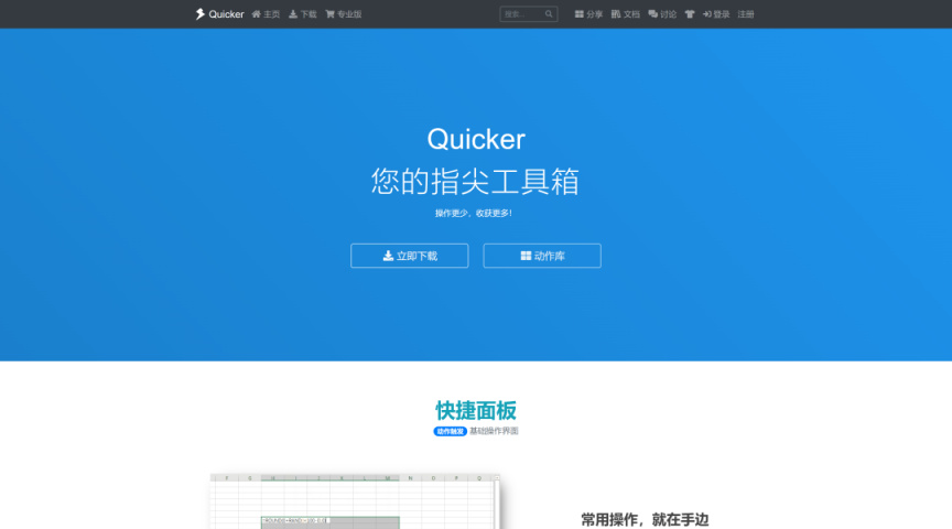 Quicker,Windows快速触发 + 自动化效率神器。在Quicker动作库里可以找到Quicker社区成员制作的批量操作Excel,浏览器快速操作和特定需求的文件管理动作。通过Quicker减少数字生活中低效的多步骤,专注于任务本身。