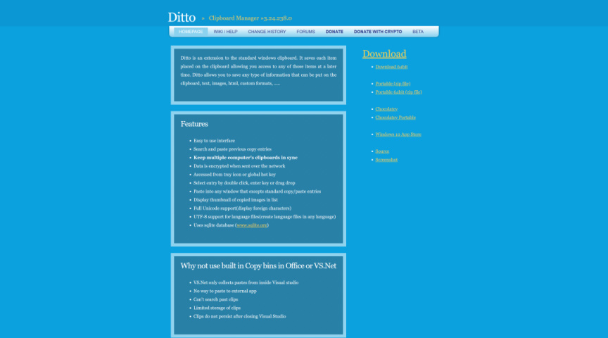 Ditto是一款开源的 Windows剪贴板管理工具,使用Ditto配合你的工作流,减少高频率的Ctrl + C 与Ctrl + V操作,提高你的工作效率。