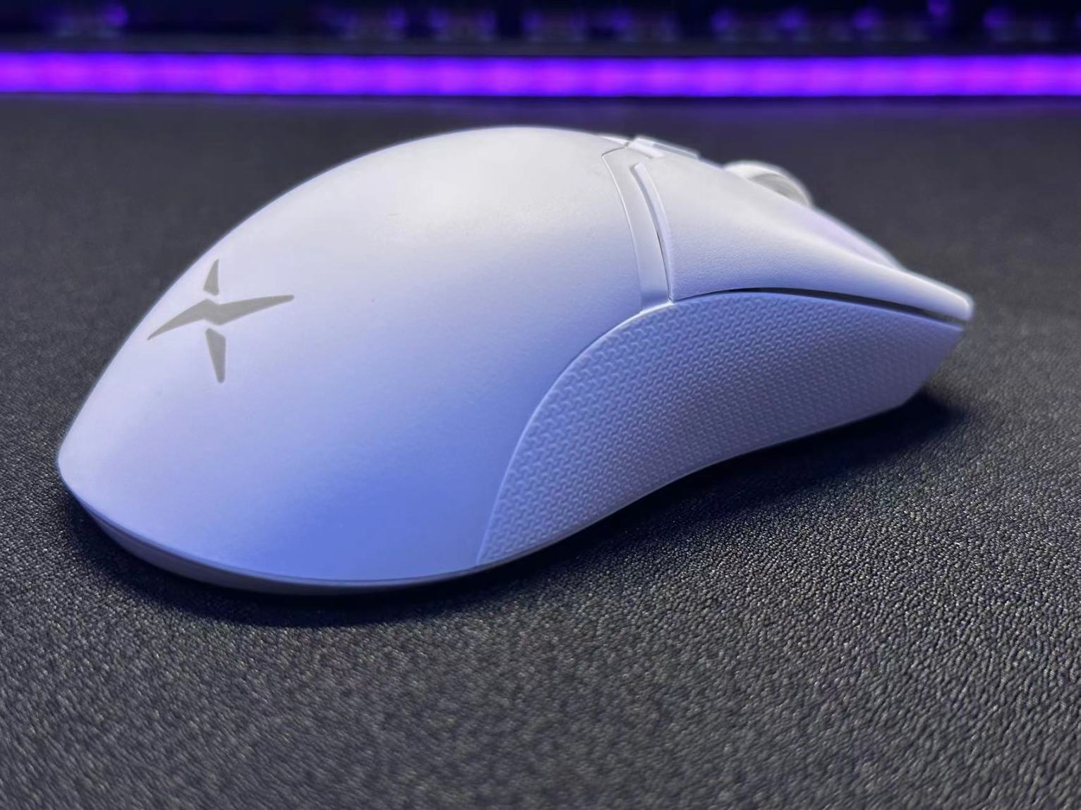 鼠标整体采用了亚uv涂成,这个涂成算得上是优秀的涂成。手感是比较细腻舒适,而且这款涂层的防滑效果也是非常强,如果是还觉的不行,那么它还给你配备了防滑贴。