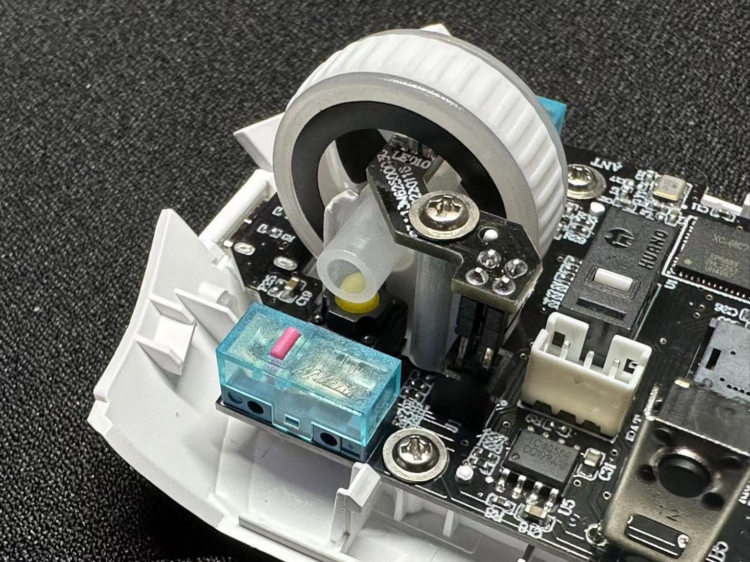 鼠标滚轮也是做了打孔处理,内部放了一颗DIP指示灯。