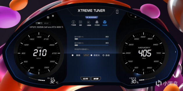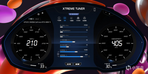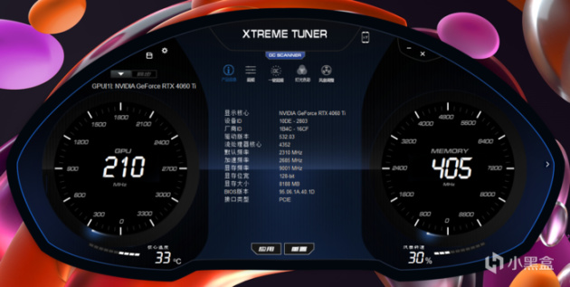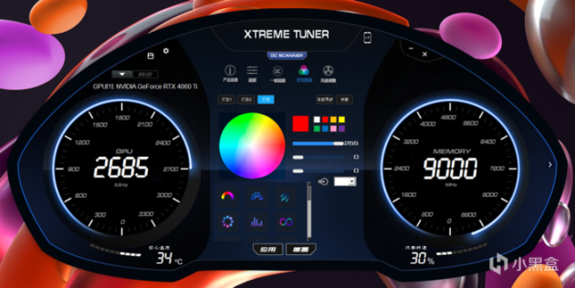 和显卡配套的影驰 XTRME TUNER 魔盘软件全面支持自家 40 系显卡,可方便进行超频、灯控调整、温度监控等便捷操作。