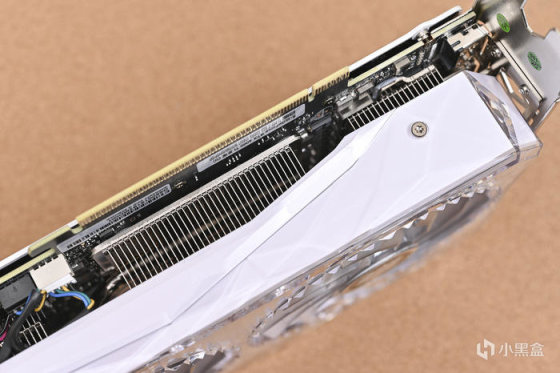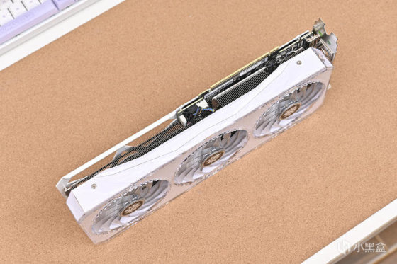 显卡尾部可以看到显卡的 3 根镀镍复合热管(3*Φ6mm)。