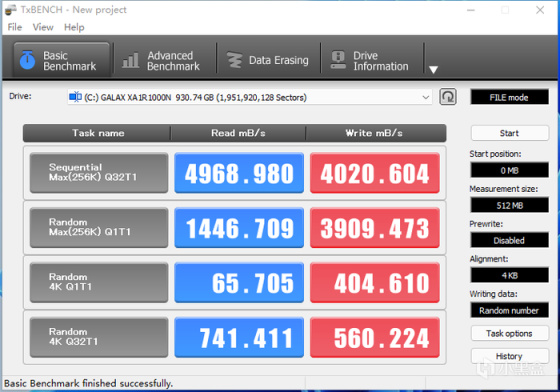 影驰 Galaxy 星曜 X4 PRO 1TB SSD TXBench 硬盘读写测试。
