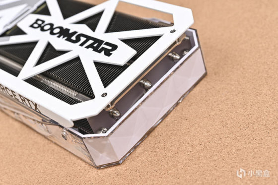 右侧则是 BOOMSTAR Logo,下方做了几何镂空开窗,贯穿通风,减少尾部中央防止下垂,同时兼顾更加散热风道。