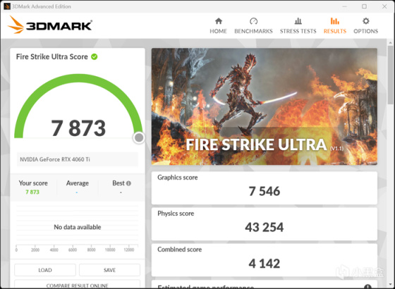 Fire Strike Ultra 测试显卡得分 7546 分。