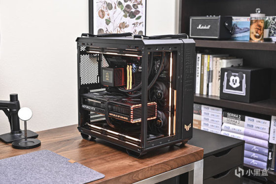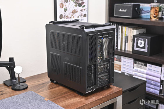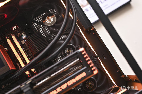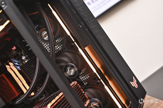 此次用 ROG 硬件搭配聯力積木風扇 P28 搭建一套黑金 GT502 彈藥箱方案。華碩 TUF GT502 彈藥庫這款機箱採用了 ATX 規格,左右雙倉結構設計,採用了模塊化設計,擁有超過 25 個可拆卸的部件,支持安裝 ATX 主板、多個 360mm 冷排和最大 400mm 長度顯卡,擁有大量的硬盤位方便存儲拓展,散熱方面,整機多達 13 個風扇位,裝水冷的話, 提供多達 4 個冷排位置, 頂部、側面、背面均可安裝 1 個 360mm 冷排, 機箱後面還可以裝 1 個 120mm 的冷排,加上大量的 Mesh 開孔網板,兼容性很高的同時還有不錯的散熱效率。另外 GT502 還支持顯卡豎裝。聯力積木風扇 P28 是聯力首款着重效能的積木風扇,邊框厚度 28cm、液晶聚合物製成(LCP)的葉片、流體動壓軸承馬達以及 3 速模式種種不同面向的設計來提供更高的效能。同時,可以相互連接以打造出可以透過單一電纜供電的風扇組,並可通過延長線連接多達 2 組風扇組。此外,P28 還有側邊 SIDE ARGB KIT 套件可供選購,同樣的互聯方式無需過多線材,可以在無損效能的情形下也得到與積木風扇 SLV2 相同的 RGB 外觀。需要注意的是,加裝 RGB 邊條會增加風扇寬度,可根據機箱風扇位實際選擇單邊/雙邊安裝。