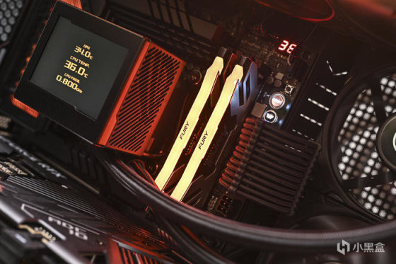 內存爲 32GB 套裝(16GB x2),速率爲 6400MT/s,延遲爲 CL32,工作電壓爲1.4V,支持 intel&AMD 雙平臺。內存內置三款XMP超頻預設文件共玩家選擇(DDR5-6400 頻率,時序爲 32-39-39-80 CR2;DDR5-6000 頻率,時序爲 32-38-38-80 CR2;DDR5 4800 頻率,時序爲38-38-38-70 CR2)。位於內存馬甲中央的 Kingston Fury 標識,下方還有叛逆者英文 Logo。