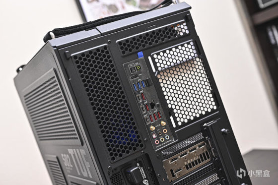機箱背部展示。機箱對每個區域進行了預劃分,同時做了大量Mesh通風網孔並輔以防塵網。機箱側板打開方式很輕巧,按動尾部兩側按鈕側板會打開30°角左右停住,方便單手打開。