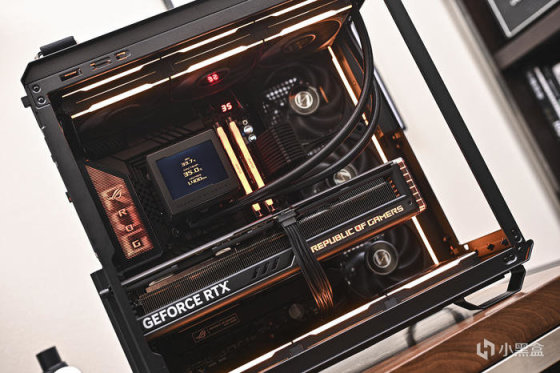 玩家可以通過華碩官方的 ARMOURY CRATE 軟件對水冷的顯示屏進行自定義畫面設置,例如定製動畫/壁紙、旋轉顯示屏屏幕等,還可以實時監控頻率、電壓、溫度、風扇轉速以及水流。