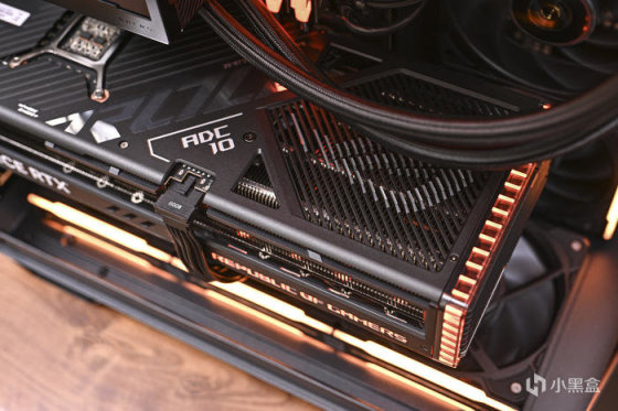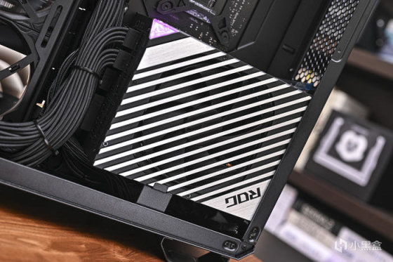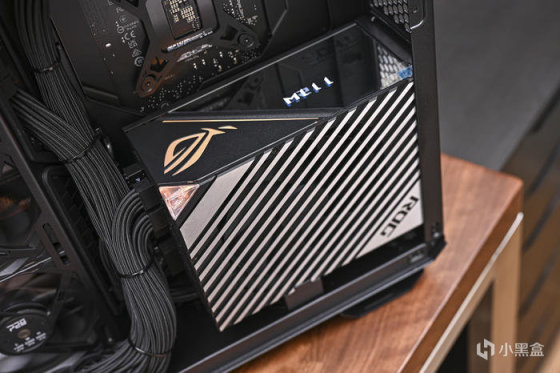ROG Thor 1000W Platinum II 雷神2代白金電源。通過了80 PLUS 白金認證和Cybenetics Lambda A++噪聲等級認證(噪音<20分貝),同時配備了定製散熱片和Axial-Tech風扇,其PWM智能轉速控制擁有安靜的聲學特徵。電源可以承受500W負載的無風扇散熱,在700W負載下風扇以12%-15%的轉速運行。