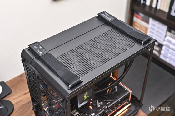 機箱配備了兩個編織手柄,可支撐 30 公斤的重量,讓用戶完成裝機後也能隨意移動。下方是通風 Mesh 網孔,內置防塵網設計。
