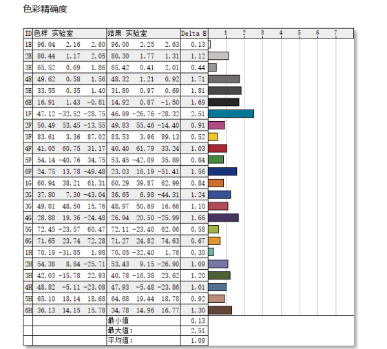色準表現非常不錯,作爲一臺主打性價比的電競顯示器,雖然並未標註色彩精度,但是實測華碩TUF小金剛PLUS的色準平均值爲1.09,最大隻有2.51,最小0.13,色彩精準度表現可以對標專業級美術顯示器了。