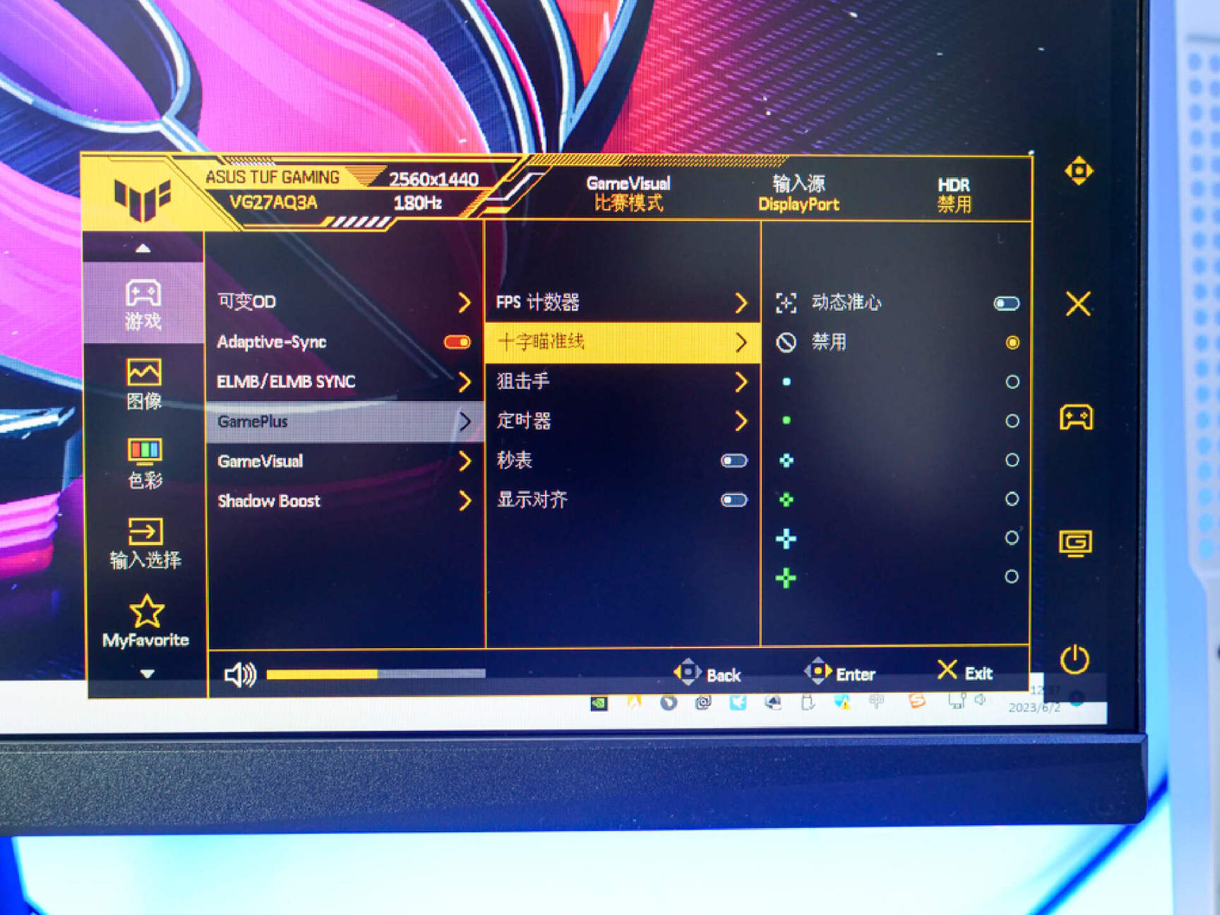 華碩TUF小金剛PLUS顯示器把遊戲設置選項設置在OSD菜單首級Tab中,玩家可以通過專屬的實體按鍵快速進入設置選項。