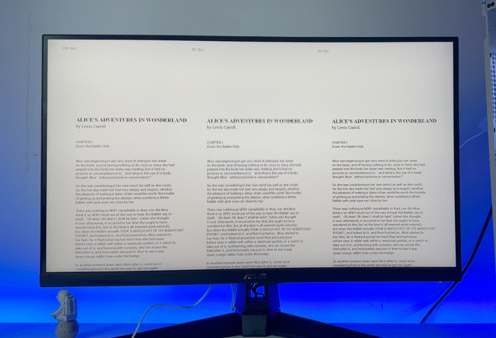 2K的分辨率,刷新率升級到了Fast IPS面板,180Hz刷新率,灰階響應1ms。注意這個是灰階響應(GTG)時間,也就是黑白灰三階都是1ms響應,不是MPRT響應時間,這兩個參數雖然都能做到1ms,但是實際效果體驗差距很大,有些顯示器“虛標”1ms的響應速度,其實是MPRT響應。