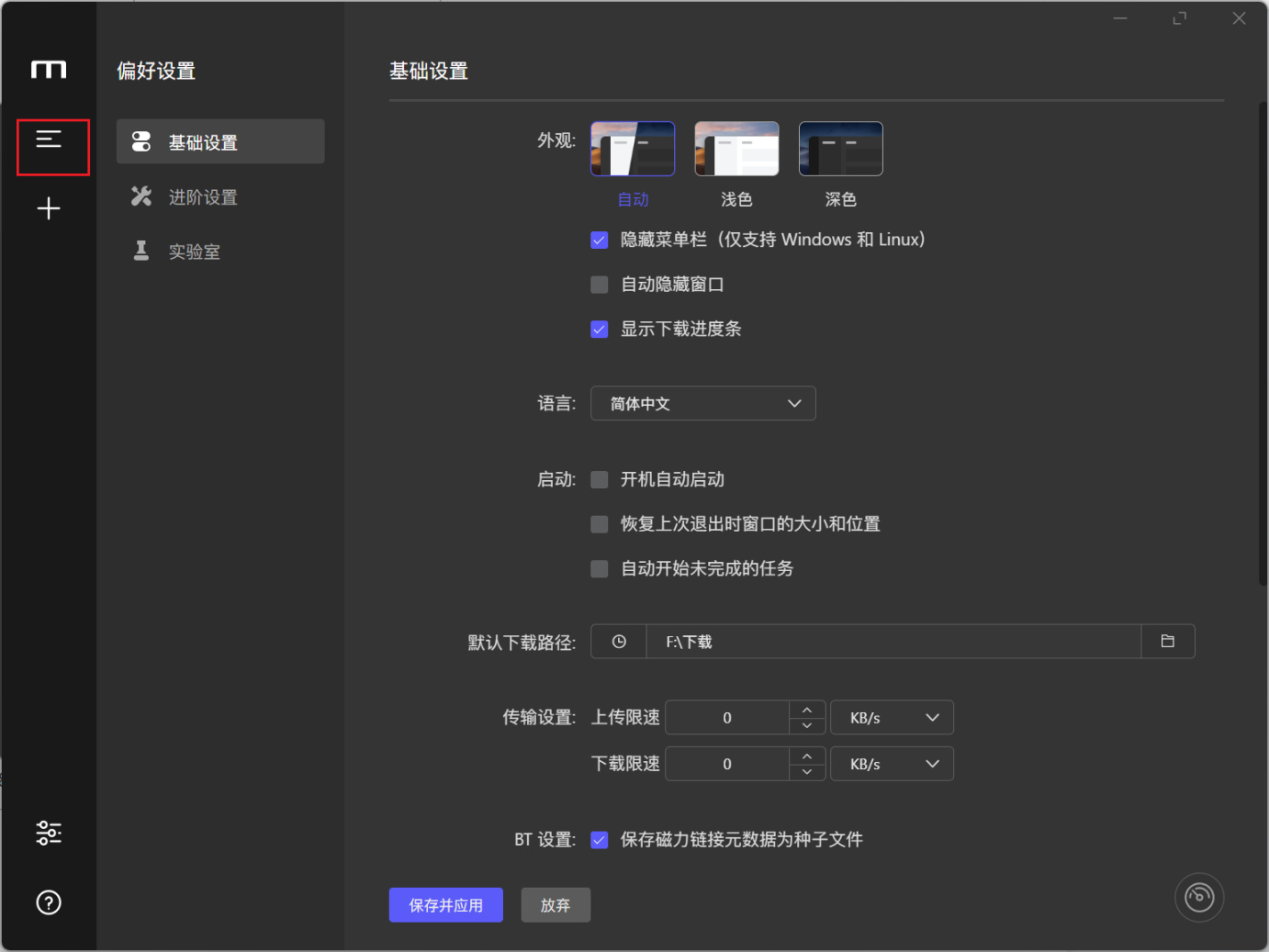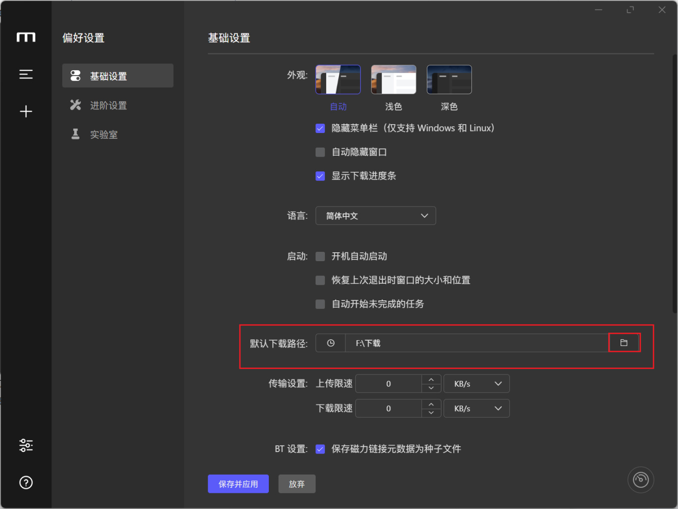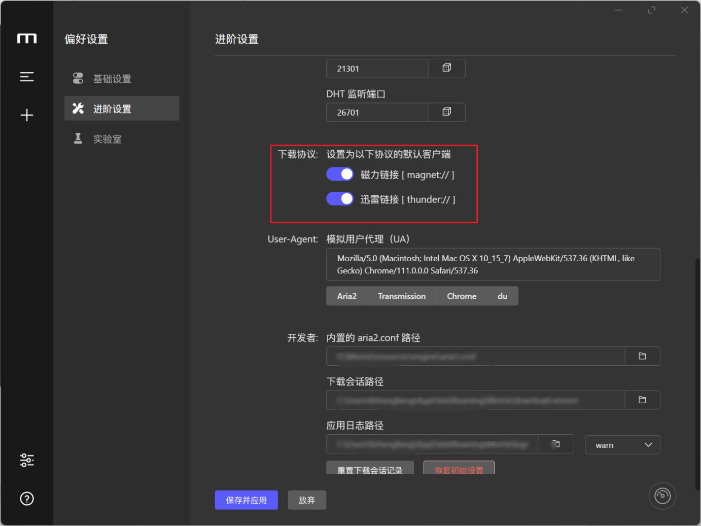 (进阶设置中有一个支持“迅雷链接”下载协议的选项,建议勾选