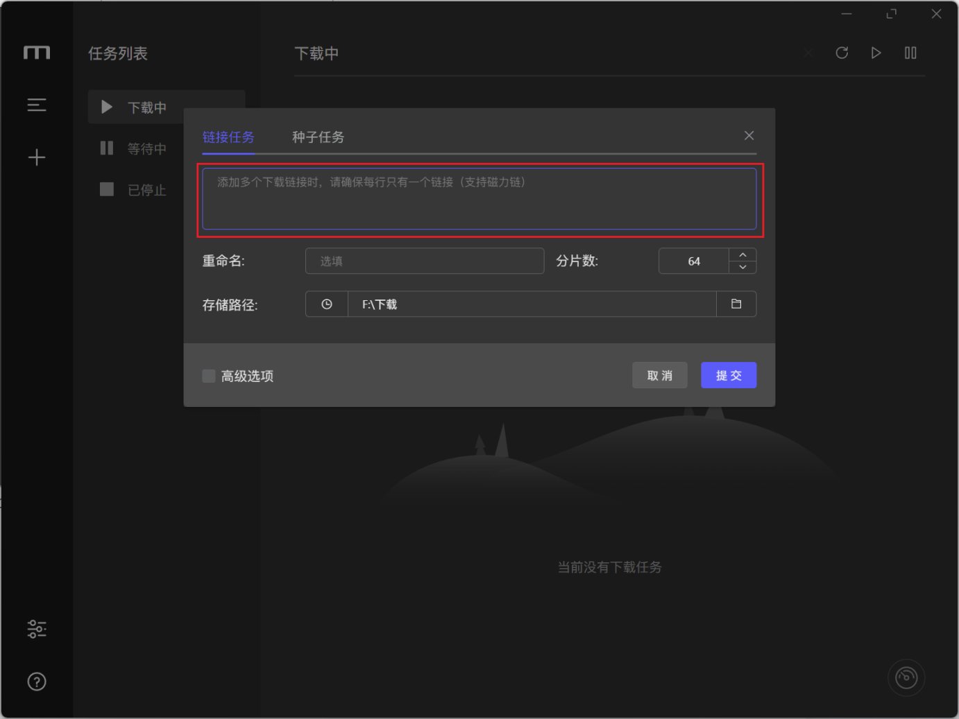 11.将连接粘贴到红色标记选框,并点击“提交”按钮即可开始下载