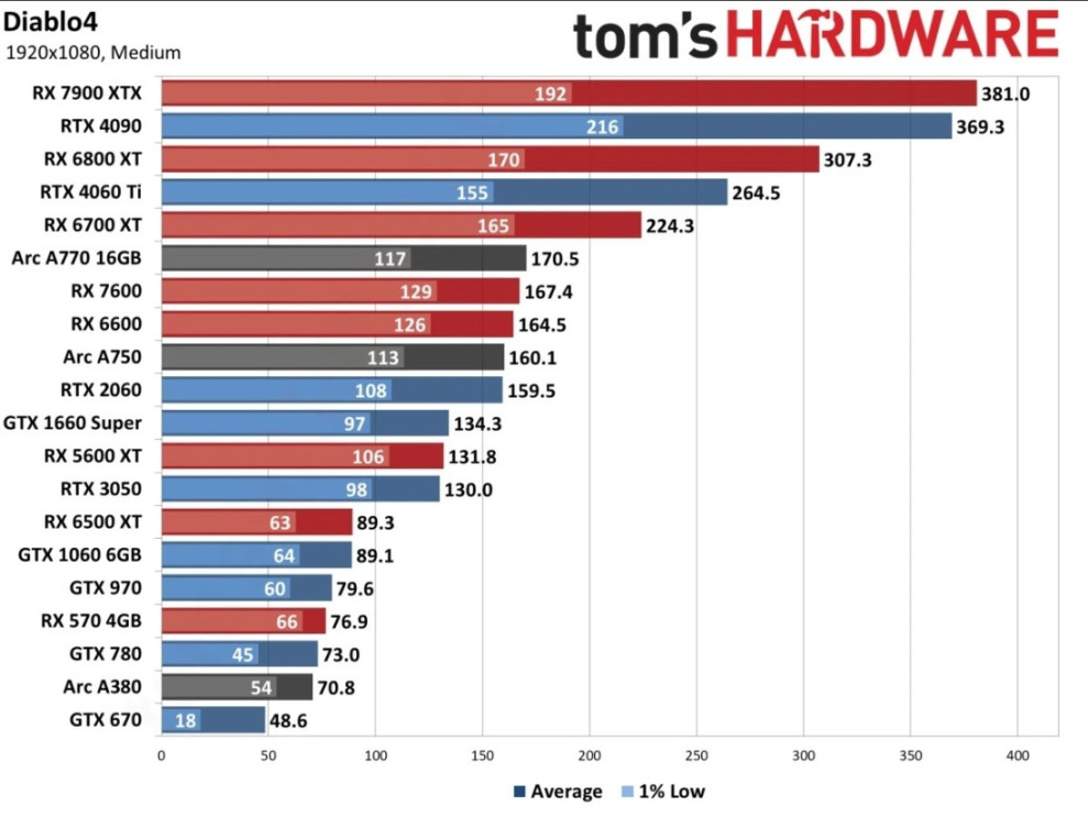 根据Tom's Hardware游戏设备网站的作者在今天(6月3日)发布的报道,他们使用了20块显卡对暗黑RPG《暗黑破坏神4》进行了测试。测试结果表明,《暗黑破坏神4》可以在搭载2012年发布的GeForce GTX 670显卡的电脑上运行。当使用2GB显存的GTX 670显卡,在1080分辨率和低画质设置下,帧率可达到62.4fps。然而,作者指出由于显存较低,实际运行中可能出现帧率下降,最高可达到28fps。