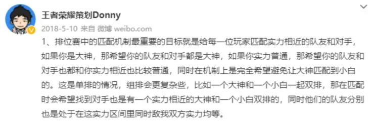 王者榮耀策劃承認使用elo進行匹配
