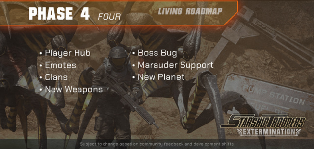 阶段四:玩家大厅;表情;公会;新武器;虫子Boss;掠夺者支援;新的星球