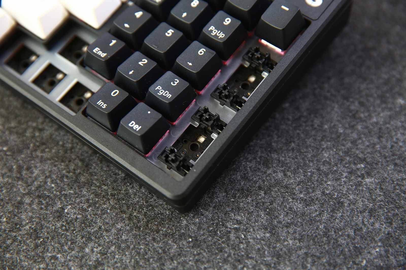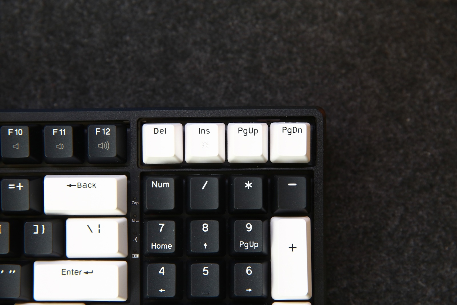 键盘是经典的黑白熊猫配色,虽然仅售199元,但质感和颜值完全不输大几百的产品,键帽是PBT材质,经久耐用,不易打油,表面是轻微磨砂质感,手指敲上去触感很好。