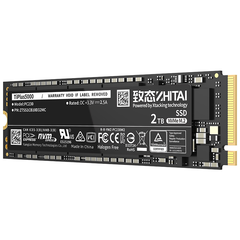 致態 TiPlus5000 固態硬盤,讀取速度 3500MB/s,NVMe M.2 接口,2TB 日常售價爲 799 元。