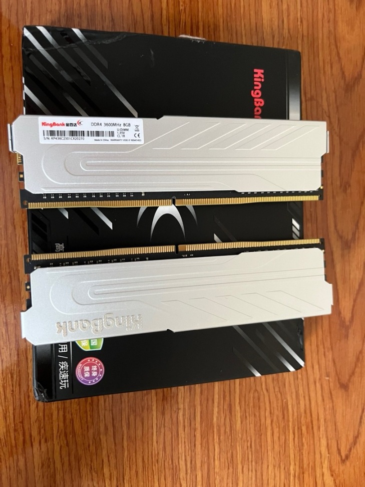 內存條:金百達 銀爵 3600 8g*2 (165RMB)