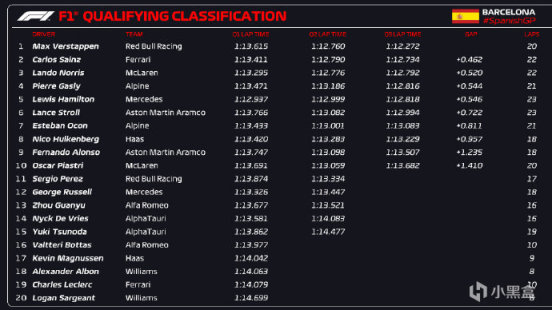 周六的三练,加泰天空乌云笼罩,维斯塔潘以1:13.664排在第一,佩雷兹第二,落后0.25秒,汉密尔顿第三,落后0.408秒,塞恩斯、阿隆索分列四五名!排位赛Q1,由于赛道并没有完全恢复到干地状态,多位车手在飞行圈中打滑,最终博塔斯、马格努森、阿尔本、勒克莱尔和萨金特被淘汰,上一次乐扣未晋级Q2还要追溯到2019年的摩纳哥大奖赛!