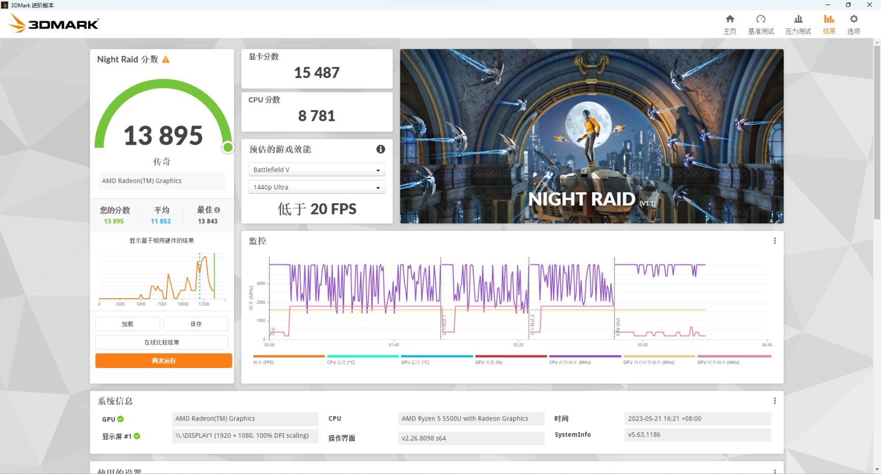 3DMark Night Raid测试主要针对搭载集成显卡的PC的DirectX 12性能进行测试。该测试通过各种图形处理技术的测试,例如动态反射、环境光遮挡、延迟渲染、曲面细分、景深效果和复杂粒子等,综合得分达到了13895,其中显卡得分为15487,CPU得分为8781,通过这次测试,我们可以看到零刻 SER5 搭载集成显卡的PC在DirectX 12性能方面表现出色,尤其是在动态反射、环境光遮挡、延迟渲染、曲面细分、景深效果和复杂粒子等方面,都取得了非常出色的成绩。