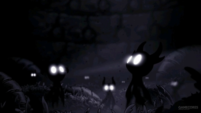 在泪城我们会拿到一个关键的能力锁,下砸,而安息之地的下部即地窖,有着一个个墓室需要玩家用下砸打开。将主角的攻击技能与地图环境相结合,这一点hk做的真是太好了,它无时无刻都在告诉我们要活用自己的能力。