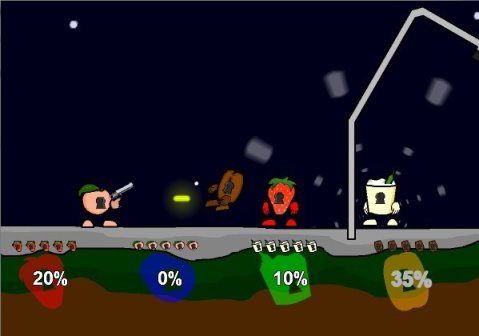 和表哥搶電腦時,必玩的雙人小遊戲。當時這款遊戲可謂風靡全網,四個小夥伴擠在電腦桌前同屏競技。不管別人選什麼,我每局必選桃子角色,用火箭筒把敵人一轟飛天!