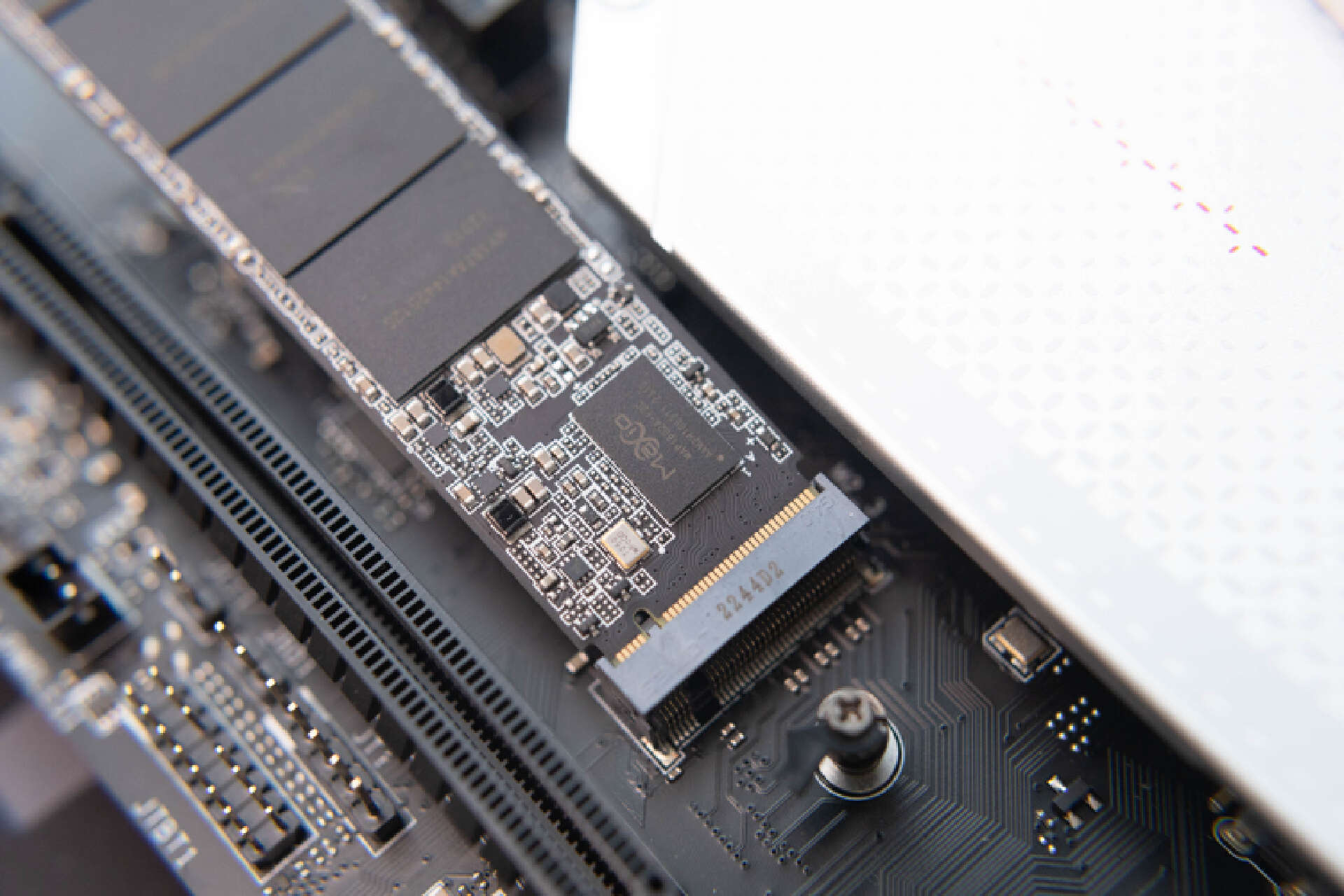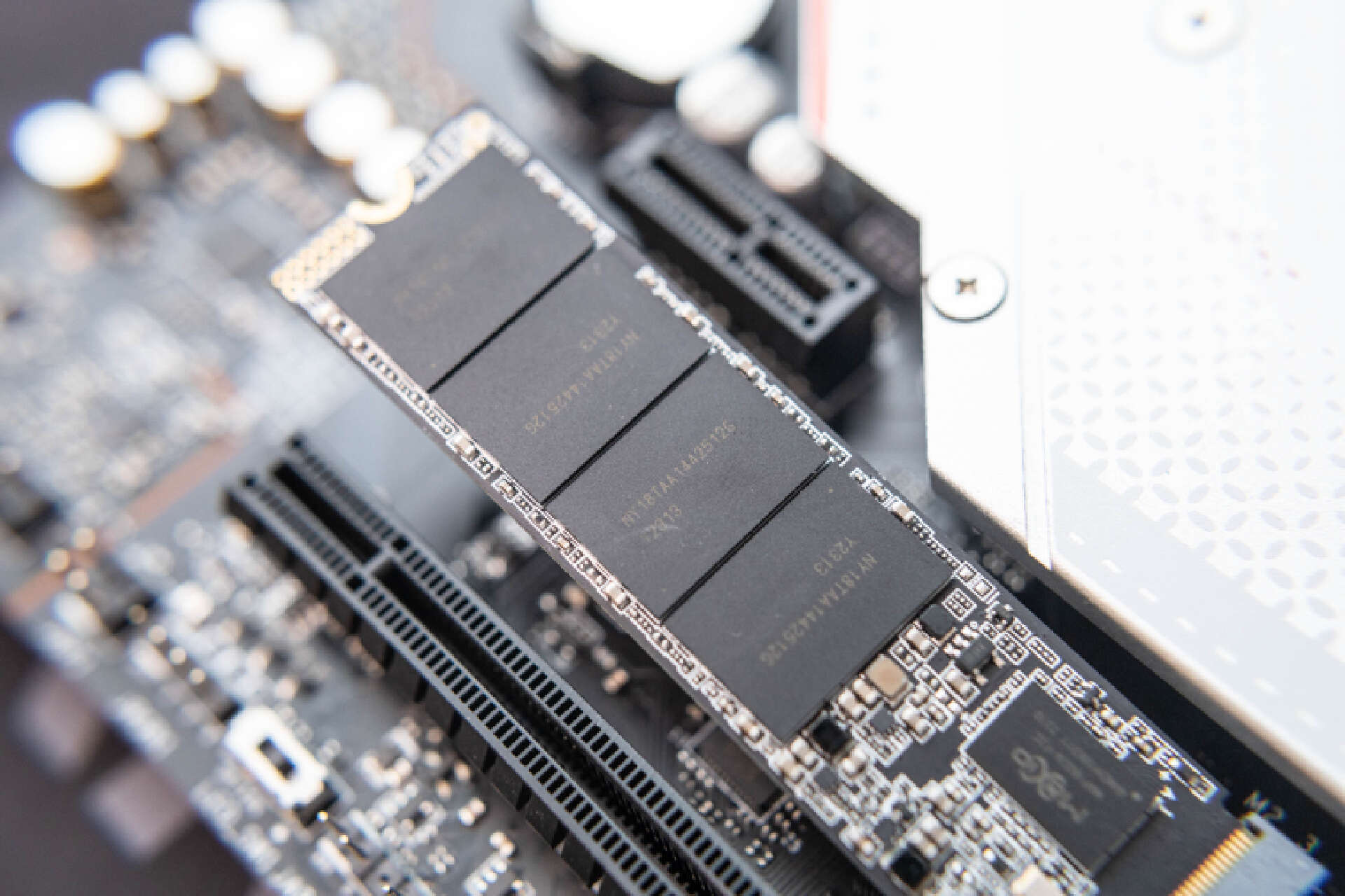从侧面看,可以发现这根2TB容量的固态硬盘,依然坚持了单面贴片封装。