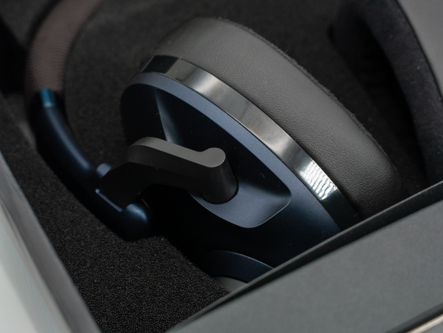作爲一款遊戲耳機它的外觀居然沒有任何RGB元素,耳機上只有一個小小的藍色指示燈。
