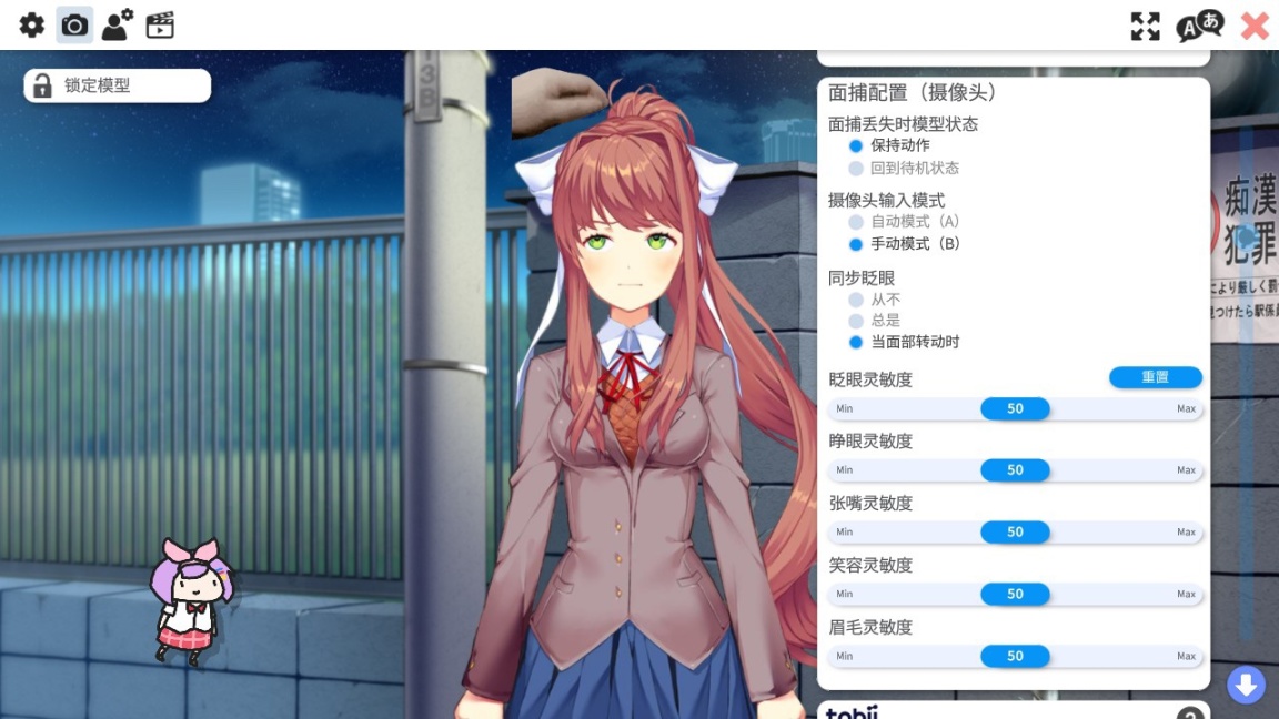 在這裏也可以調節動捕靈敏度,如模型對眨眼、張嘴的反應度,這個需要你自己去體驗,選擇最適合你的參數,總體來說是比較方便的。