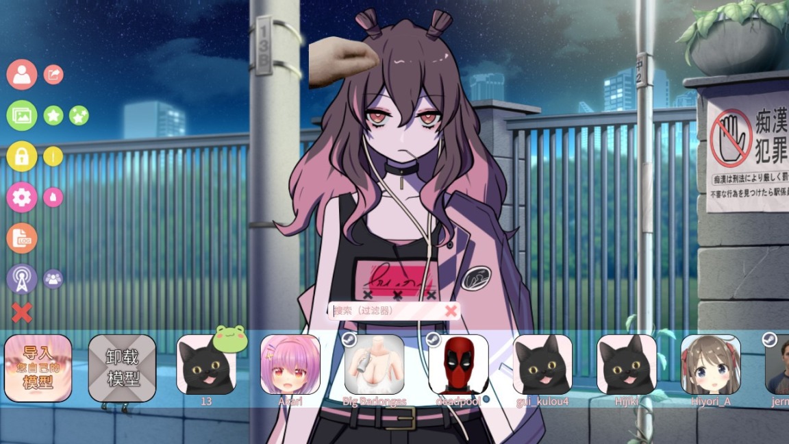 簡單介紹一下ui界面左側的功能欄,分別是:模型、背景、鎖定、設置、日誌、多人互動、關閉。在本篇只介紹前四個選項,這也是初學者必須瞭解的。