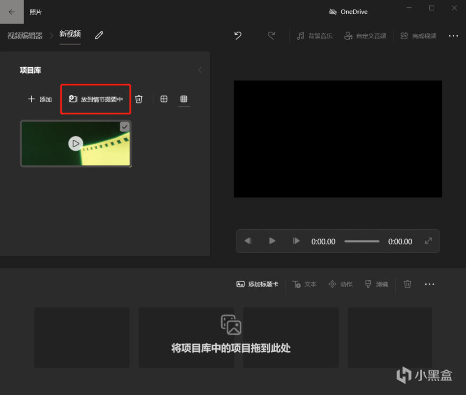 先添加視頻,選擇好你的視頻文件,添加後記得點擊”放到情節提要中“: