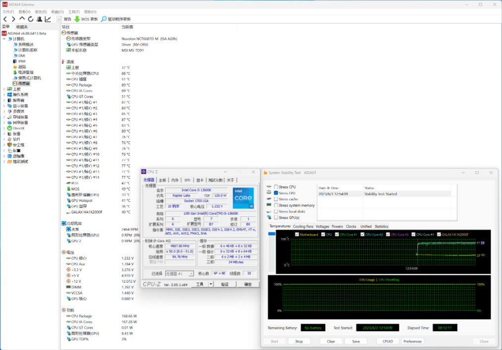 夏天来了,30多度基本是常态,机箱内环境,直接烤机,CPU功耗170W左右,温度在88°左右。