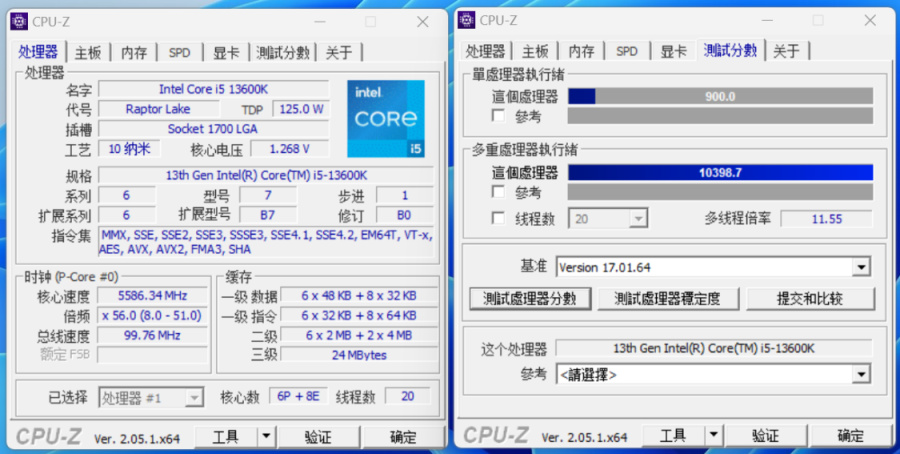 直接拉个全核OC 5.6G,单核得分900分,多核得分10398.7分;