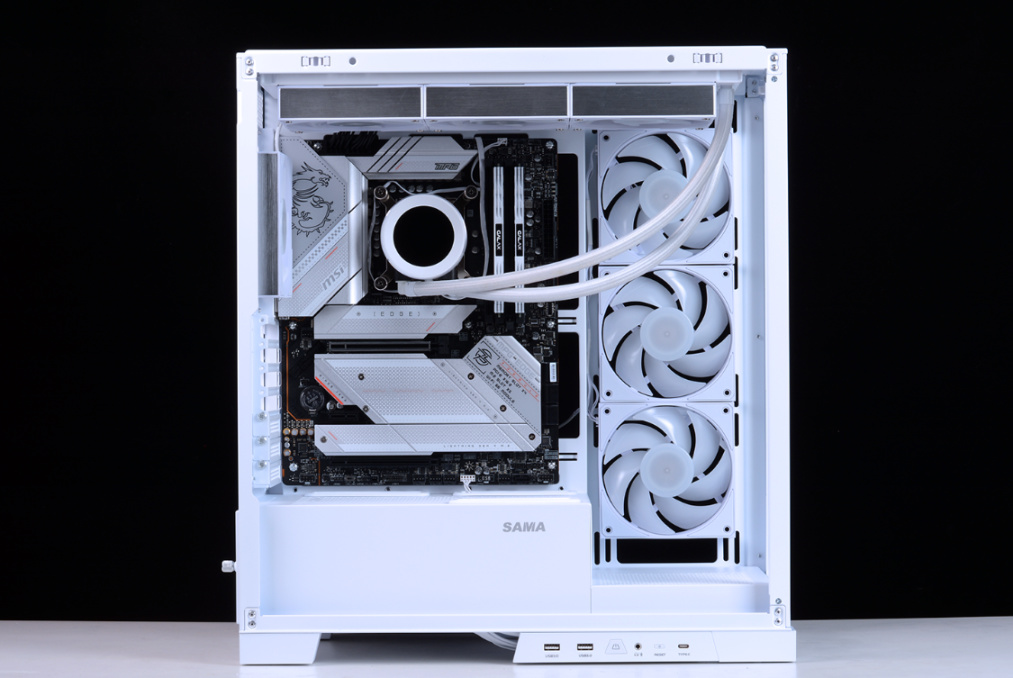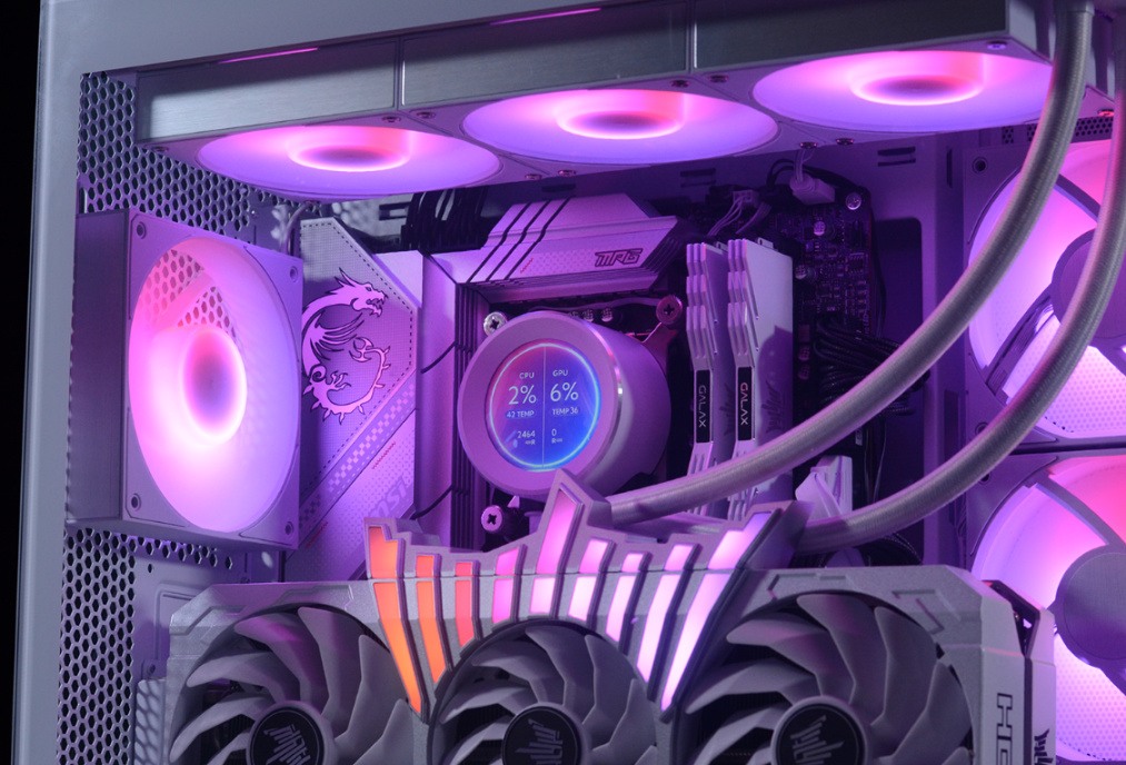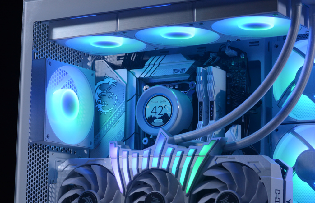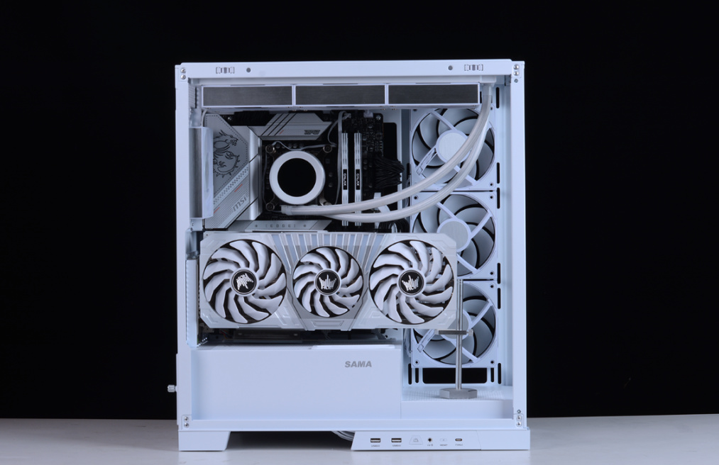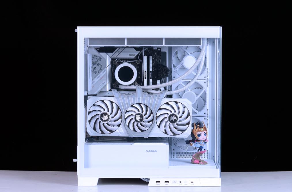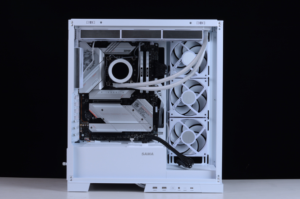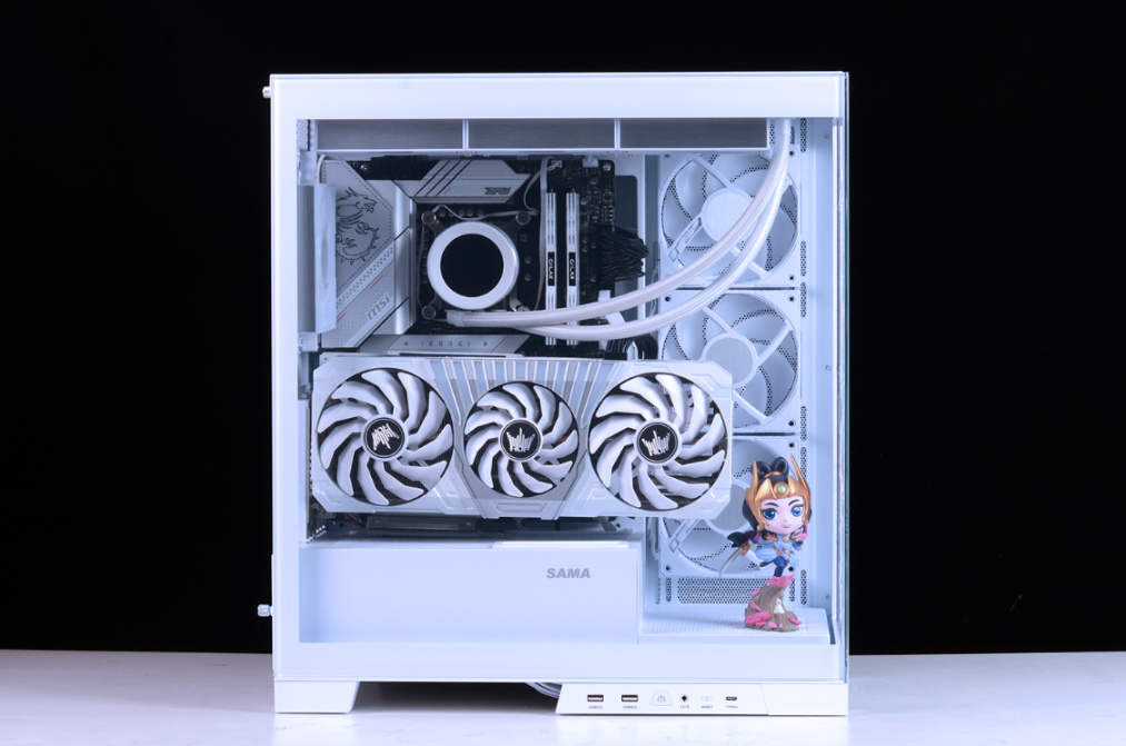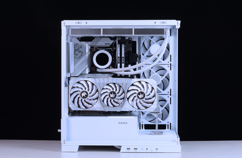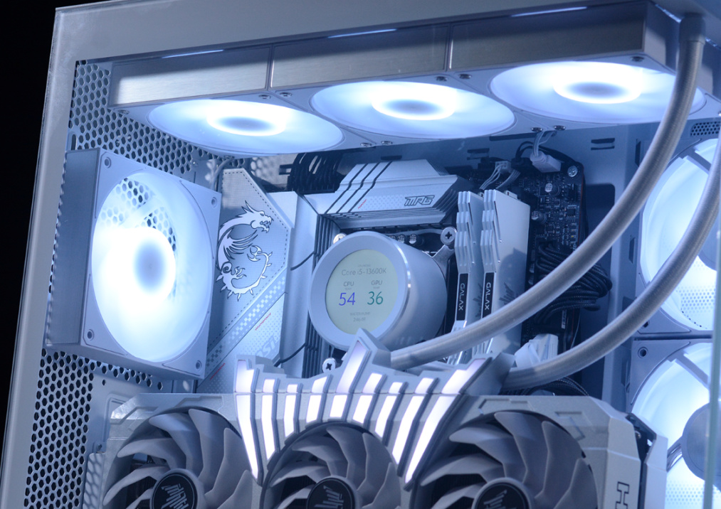 完整配置单如下:Intel i5-13600K,微星MPG Z790 EDGE WIFI DDR4主板,影驰名人堂HOF RTX 4070Ti OC LAB显卡 ,HOF classic D4-4000 16G*2内存,HOF PRO30 2T M.2固态,HOFpcie4.0显卡延长线,先马大境界白色海景房机箱,先马XP1000W ATX3.0全模组白金牌电源、先马XW360W(无风扇版)白色水冷、先马XT128 ARGB风扇套装*3…