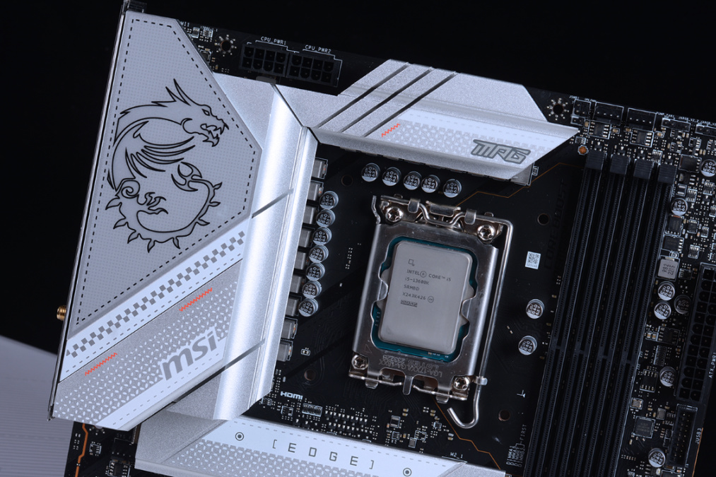 带K的i5,B760和Z790,都算得上良配。不过在D4跟D5之间,个人觉得你可以遵从本心,因为高频D4对于游戏玩家来讲,确实很香。再考虑到海景房装机主题,咱直接给朋友推荐的是一块微星Z790 EDGE WIFI D4主板。虽然没有白色PCB,但是大面积银色金属散热装甲的覆盖,颜值直接拉满;